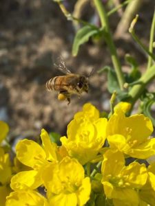生後4週間を超え十分な体力がつくと、外に蜜と花粉を取りに働きに出掛けます。内勤から外回りに!いよいよ忙しい時を迎えます。働きバチの行動範囲は2㎞くらい。生涯でスプーン一杯のはちみつを集めるのが仕事になります。