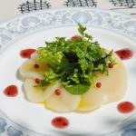 帆立の上の赤いのはピンクペッパーです。